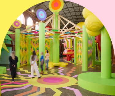 Chasing Sunbeams by Morag Myerscough is a multi-sensory art experience and installation located in the Mining Exchange Building at 12 Lydiard Street North, Ballarat.